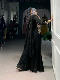 #plazokurtaset #georgettekurtaset #salwarsuit #embroiderywork #ethanicplazokurti #dress #georgetteplazo #kurtastyle #weddingwear#eidcollection #partywear #eidoutfit #indianwear #sequinsdress #readytowear #partywearsuitsforwomen #dupattapair #blackpunjabisuit #eidwithlulusar