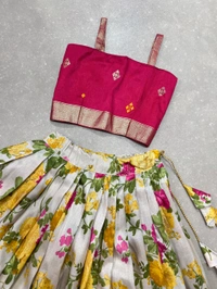 #lehengacholi #kidslehengacholi #pattupavadai #kidsclothing #kidslehenga #printedlehengacholi #kidstraditionalwear #kidsfashion #indiankidswear #tussarsilk