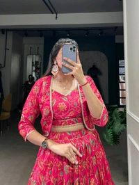 Tusser Silk Floral Print Lehenga With Koti